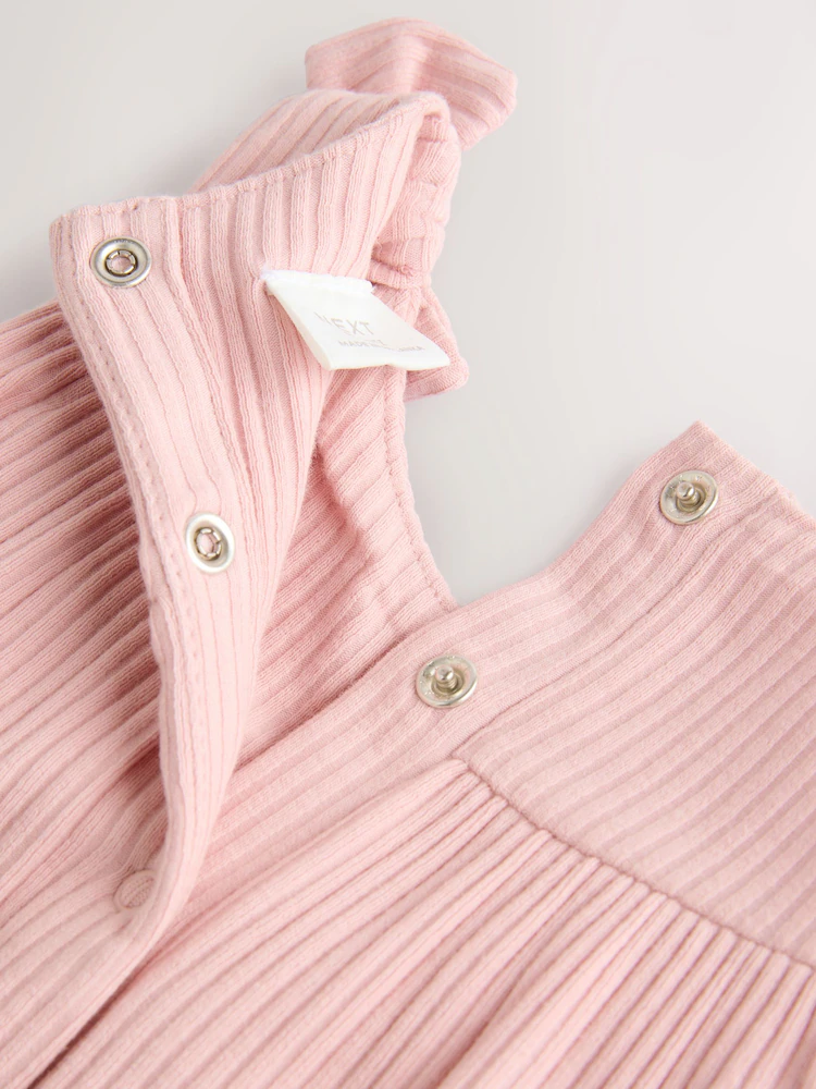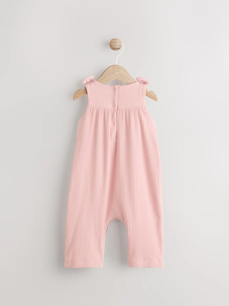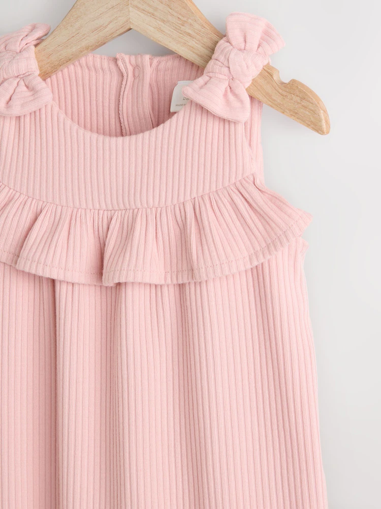 In a cotton rich blend, this pink sleeveless baby romper is perfect for her summer style. With a ribbed texture and frill detailing, it’s complete with popper fastening for easy dressing.