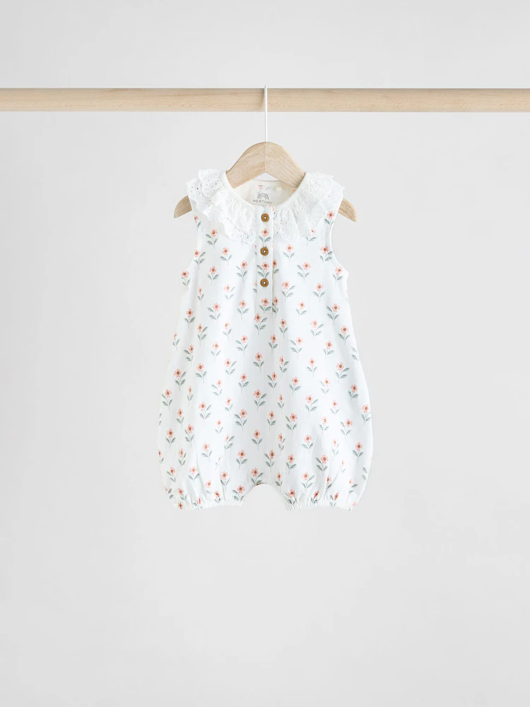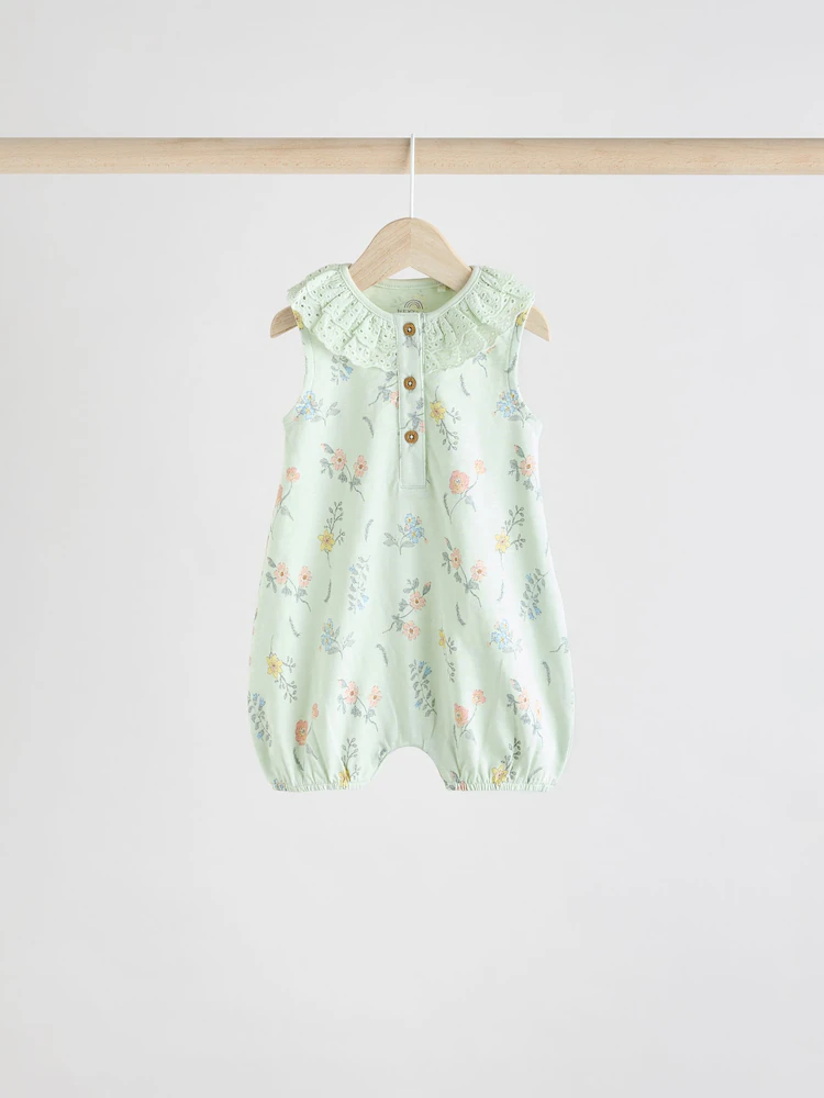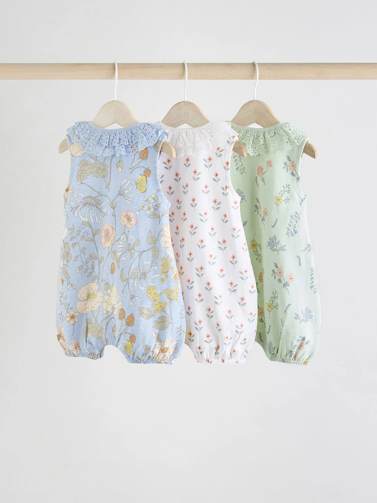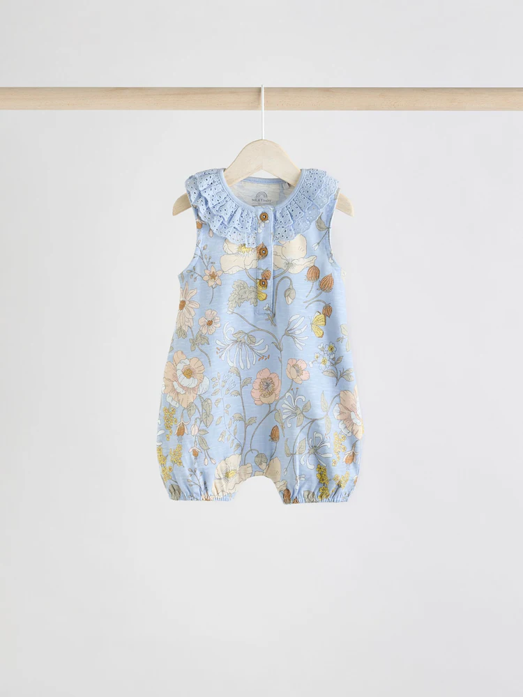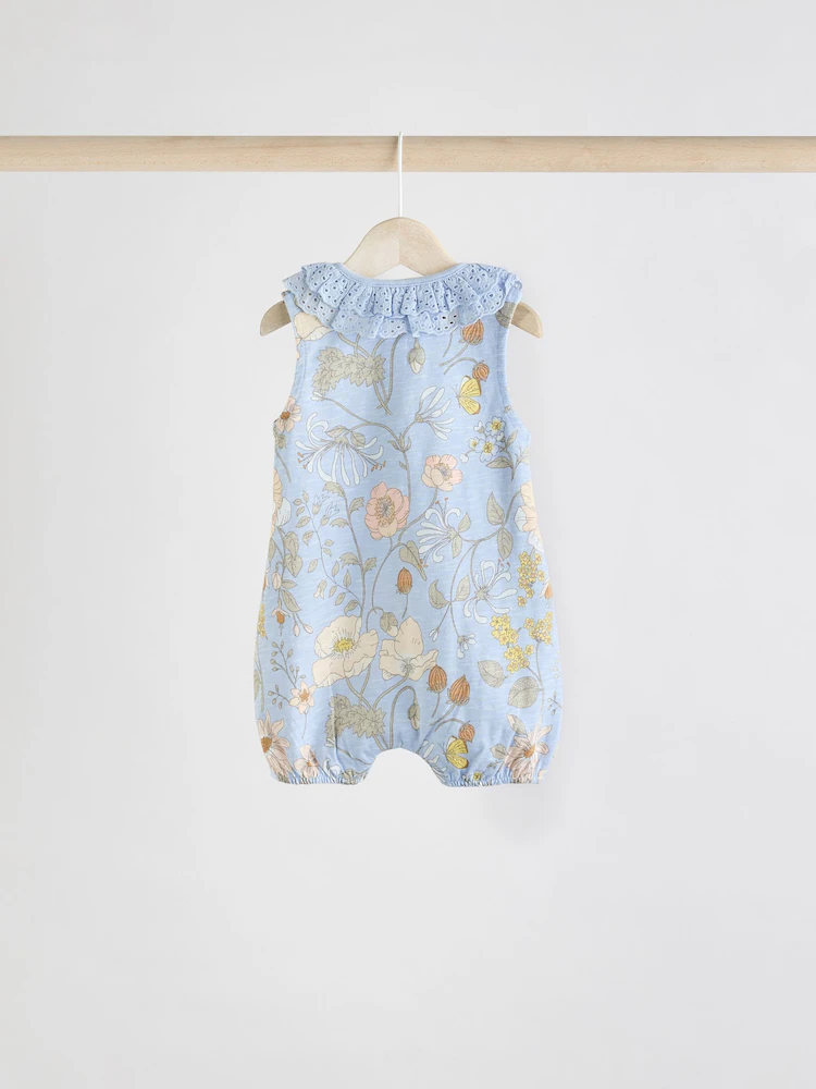 Dress your little one in comfort and style with this charming blue and pink floral printed 3-pack of rompers. Crafted from soft 100% cotton, each romper features a delicate frill neck design and convenient popper crotch for easy changes. Perfect for everyday wear, these rompers add a touch of sweetness to any outfit.