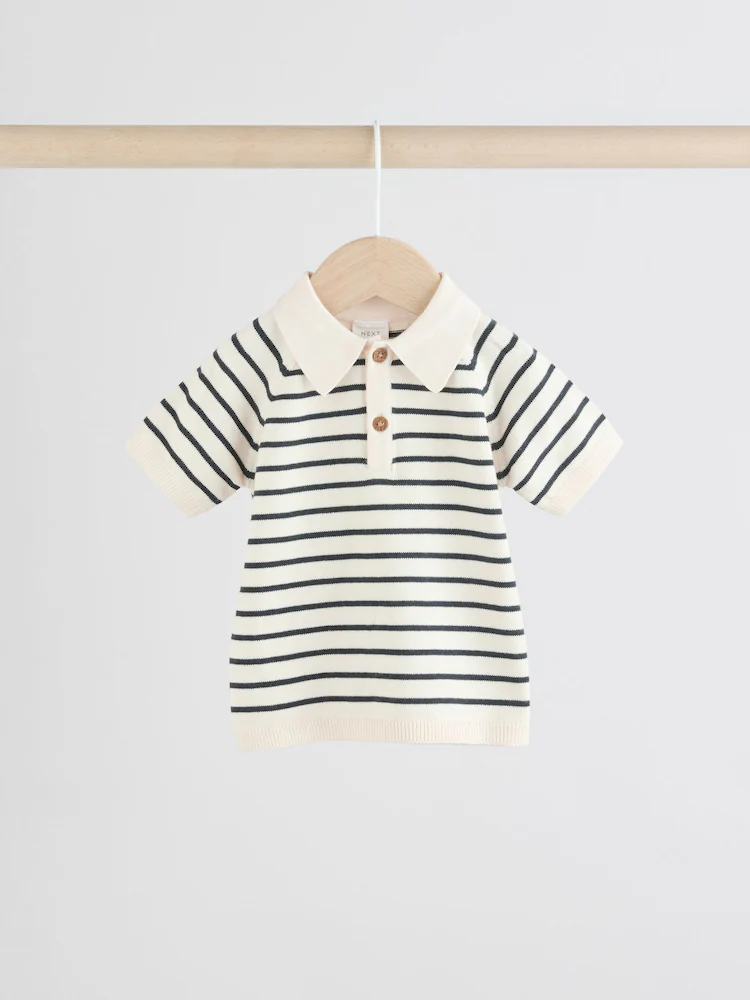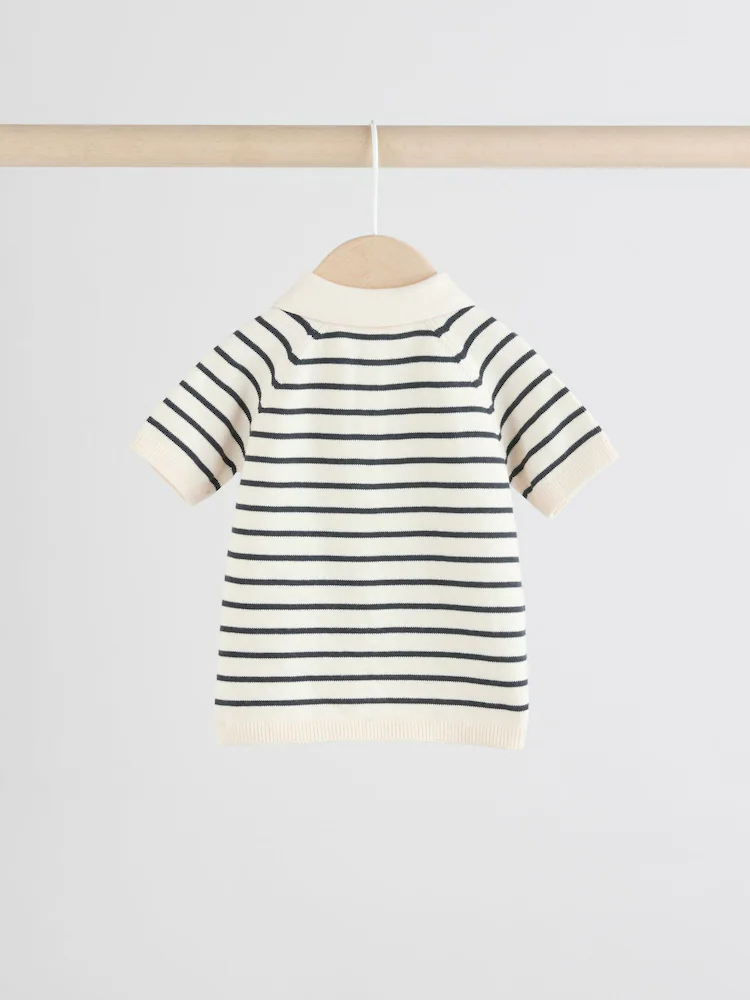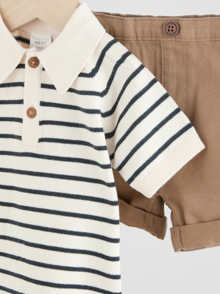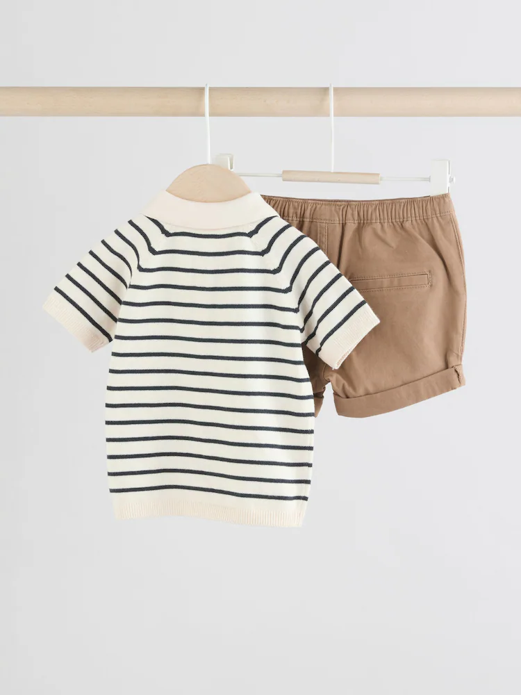 This smart-casual 2-piece set features a knitted polo top with a button-down neckline and a smart collar, alongside a pair of chino-style shorts with an elasticated waistband, made from a cotton-rich blend.